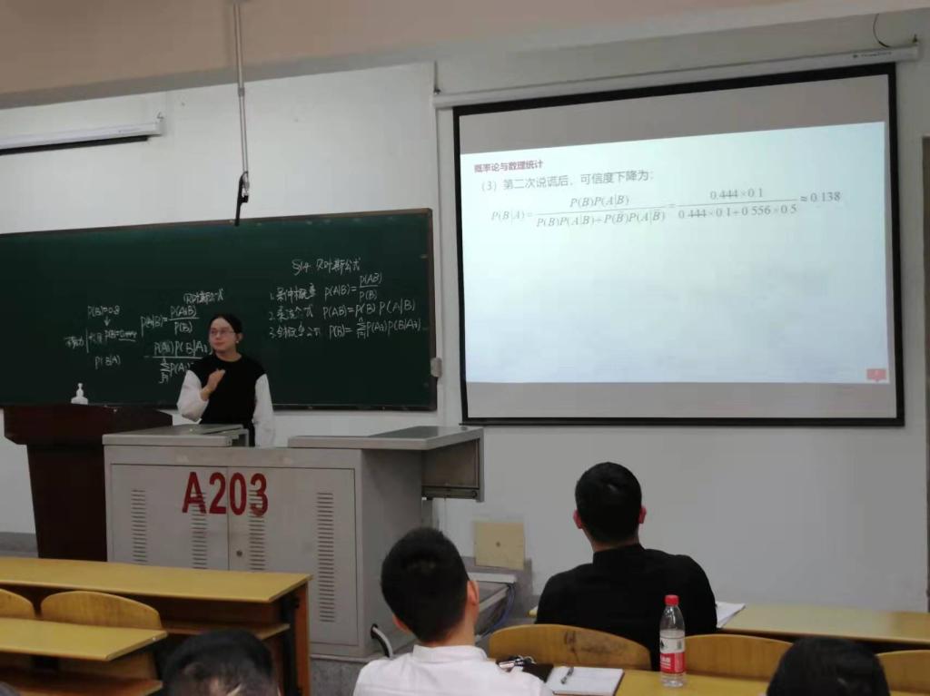 周全老师的选讲内容为《概率论与数理统计》中的“贝叶斯公式”,她以大家感兴趣的案例引入了贝叶斯公式的定义,深入浅出地讲授了贝叶斯公式的实际应用,并较好地融入了思政元素,润物细无声;贾静兰老师的选讲内容为《高等数学》中的“拉格朗日中值定理”,通过两个定理的对比,让大家对拉格朗日中值定理有了更深入的理解。两位老师着装典雅得体,教态自然大方,通过丰富的肢体表现,并借助多媒体等教学辅助设备,有层次、有重点地讲授了专业知识。总的来看,两位老师的授课信息量大,图文并茂,深入浅出,具有启发性,充分展示了iqqtv