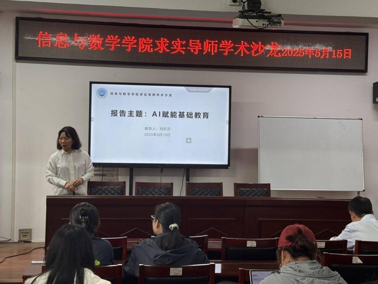 紧接着,刘彩云老师以“AI赋能基础教育”这一前沿主题和同学们进行了交流和探讨。她首先剖析了当前基础教育领域存在的教学资源分配不均、个性化教学缺失、学习反馈滞后等痛点问题,继而聚焦AI技术在教育场景中的应用潜力,从个性化学习路径规划、减负增效、资源优化配置、教学模式创新及管理效能提升等维度进行了系统性解读。紧扣时代发展需求,刘老师梳理了近半年来北上广等一线城市针对中小学教育出台的人工智能相关政策文件,阐述基础教育阶段教师具备的人工智能素养框架,详细介绍了AI和基础教育阶段的各个环节之间的关联和应用,并用案例介绍AI在基础教育某些环节的应用优势,为数学学院研究生洞察AI与基础教育融合的前景与路径提供了多维参考。最后刘老师寄语在场同学:“未来已来,作为教育工作者和学习者,我们需要与时俱进,不断提升自身的人工智能素养,主动参与到教育生态的重构中,共同创造更加智能、更有温度、更具人文关怀的教育新生态”。