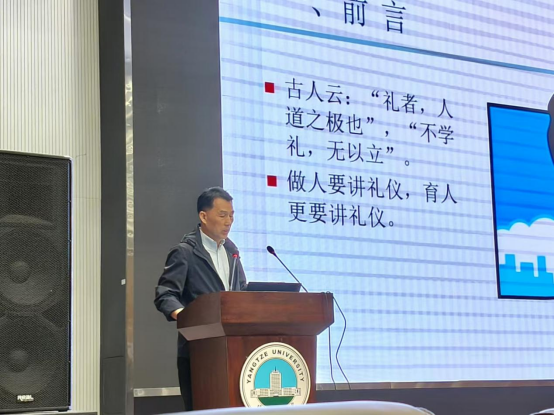 本次培训会主要讲述了学生的礼仪,礼貌问题。院党委书记李喜成老师首先借“礼者,人之道也”,“不学礼,无以立”这两句话展示文化-文明礼仪的重要性。接着李喜成书记分别从社交礼仪、穿着礼仪、接待礼仪、公务礼仪等方面展开讲述。在培训过程中,同学们积极互动,认真学习,他们纷纷表示这次培训让大家意识到了礼仪在生活和工作中的重要作用。同时,李书记也对同学们寄予厚望,希望他们能在今后的学习和生活中加强对礼仪的理解并进行实践。