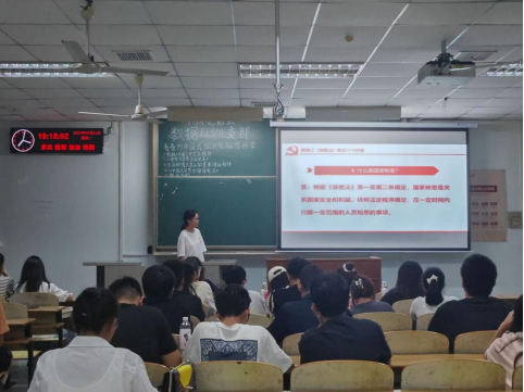 接着由柳雅兰带领大家学习《中华人民共和国保守国家秘密法》,并结合相关的问卷调查、展示相关材料、提出相应的问题引导同学们进行思考与讨论,让同学们对《中华人民共和国保守国家秘密法》有了更加深刻的认识。紧接着由吴汝带领同学们学习就业引航版块,让大家了解相关的就业知识,养成了自主学习习惯,促进同学们的全面发展。最后由何鼎孳对此次团会进行总结发言。