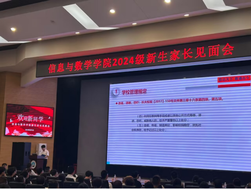 接着,钟赛老师介绍了学院的奖惩制度。钟老师强调,学院设立了完善的奖励机制,对在学习、社会实践等方面表现突出的学生给予表彰和奖励,以激励学生积极进取。同时,对于违反校规校纪的学生,学院也将依据相关规定进行严肃处理,以维护良好的教学秩序和校园环境。