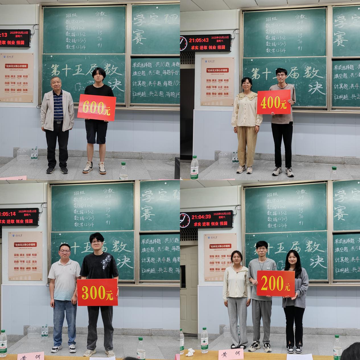 经过多轮激烈角逐,数学 12304 班、数据 12302 班、数据 12303 班以及数学 12204 班脱颖而出,荣获佳绩。这些奖项不仅是对同学们努力付出的肯定,更是对他们勇于追求真理、探索数学奥秘精神的高度赞扬。