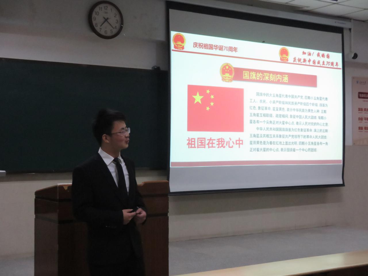 在东校区12教202教室开展“庆祝新中国成立70周年”学习活动,2016级、2018级本科生参加。本次学习活动由2018级应用数学专业研究生沈马锐主讲。