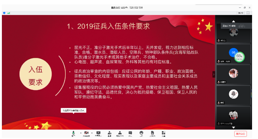 于5月15日晚七时举行了“2020年征兵宣讲线上会议”,特邀韩王戴贤和邓书雨两位退伍军人为与会成员进行宣讲。iqqtv