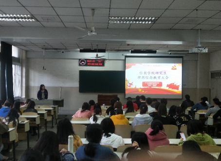 在东校区12教101教室举行了“理想信念教育大会”,学院副党委书记袁海山出席大会,全体研究生参会,会议由iqqtv
