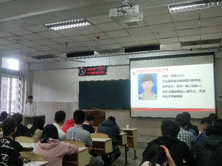 2018级数学与应用数学研究生高聪同学和沈马锐同学分享经验,学院全体研究生参加。