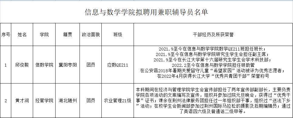 因工作需求,iqqtv 根据iqqtv 兼职辅导员招聘要求,经“个人申请、资格审查、面试考核”等工作程序,拟聘用邱俊毅、黄才润为iqqtv 兼职辅导员,现予以公示。