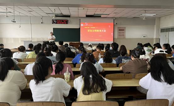 会上,袁海山副书记针对防诈骗、防溺水安全、出游安全、交通安全、寝室用电安全、饮食安全等方面对同学们进行了加强教育,提醒学生在端午假期一定要注意寝室用水用电安全、饮食健康以及假期中全体学生离校需报备、不聚集。出行要注意人身安全,加强自我保护,防疫安全记心间。并着重强调同学们必须严格遵守校纪校规,遵守学校的各项规章制度,没有安全就没有未来,要时刻紧绷安全的弦。