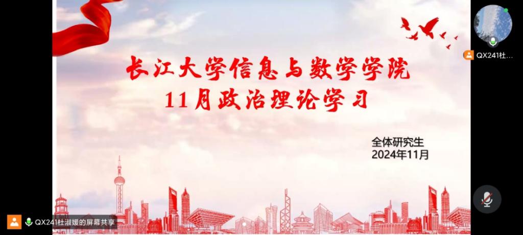 全体研究生在线上开展十一月政治理论学习活动,此次会议由研究生会组织部杜淑媛主持。
