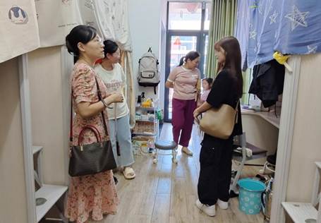 随后,老师们对20级毕业年级寝室进行了走访,对学生最关注的就业和考研等方面进行了相关指导。最后,老师们前往23级新生宿舍,了解新生即将居住的环境,对于宿舍文化建设提出了建议,并表示在日后的工作中对优秀寝室进行表彰,建立iqqtv