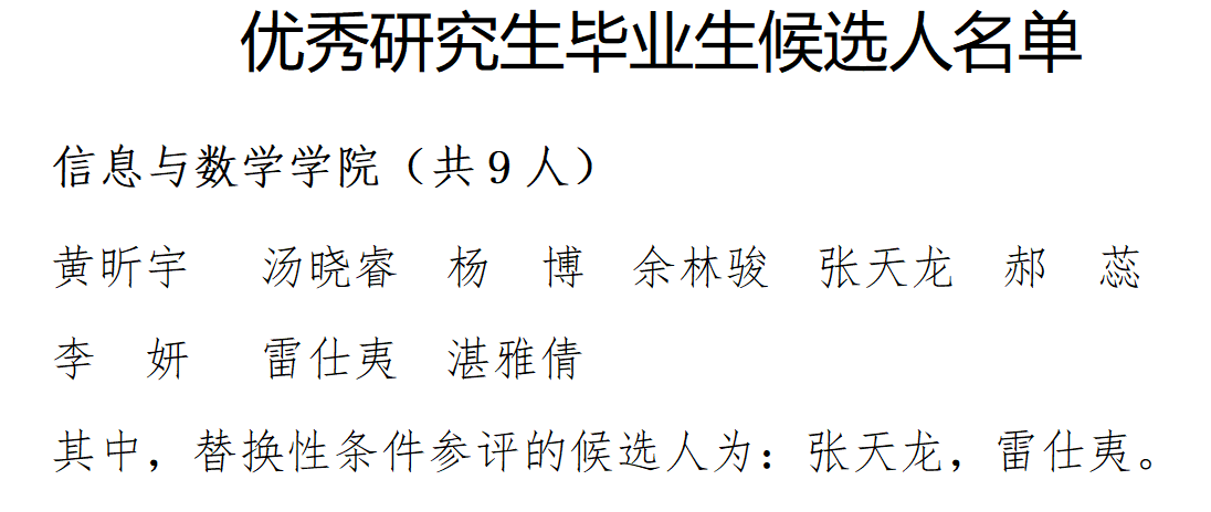 根据iqqtv 工作安排,结合iqqtv 实际,经个人申报、班级提名、党政联席会按照公平、公正、公开的原则进行资格复查、综合评议,现将iqqtv 研究生拟获得2025年优秀研究生毕业生名单公示如下。