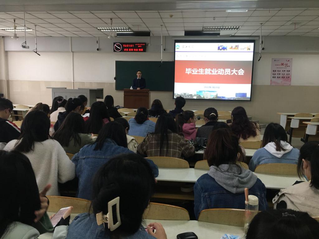 2018级毕业生就业动员大会在12教302圆满召开。出席本次会议的人员有院党委副书记袁海山、学工办主任严星、辅导员黄何以及2018级全体毕业生。本次大会由学工办主任严星主持。