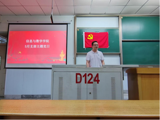 于13教D124教室隆重召开支部主题党日会议。党支部书记吴朝晖、全体党员及预备党员参加了此次活动。