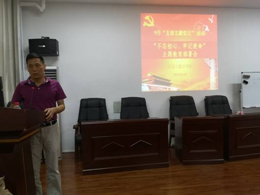 会上,袁海山带领大家重温了习近平总书记在“不忘初心、牢记使命”主题教育工作会议上的重要讲话,传达了我校9月16日上午“不忘初心、牢记使命”主题教育动员部署会及9月26日上午校主题教育推进会精神,并传达了朱业宏书记在动员部署会上的讲话。袁海山指出全党开展“不忘初心、牢记使命”主题教育,是以习近平同志为核心的党中央统揽伟大斗争、伟大工程、伟大事业、伟大梦想作出的重大战略部署,我们要深入学习贯彻习近平总书记重要讲话精神,把主题教育作为学院当前和今后一个时期最重要的政治任务抓紧抓实抓好。