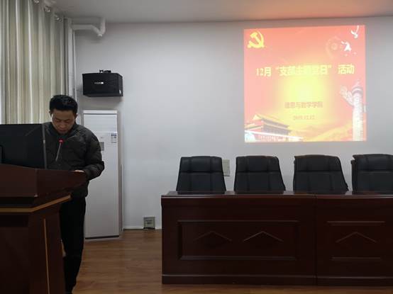 在8教406会议室举行12月教职工政治理论学习会和“支部主题党日”活动。党委书记高迎斌主持,全体教职工和全体党员参加。会议分两个阶段进行。