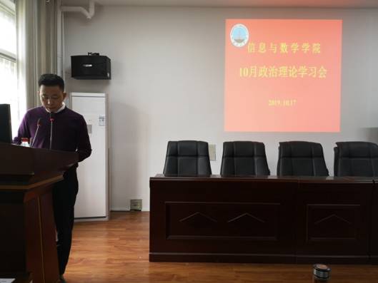在8教406会议室举行10月教职工政治理论学习会和“支部主题党日”活动。党委书记高迎斌主持,全体教职工和全体党员参加。会议分两个阶段进行。