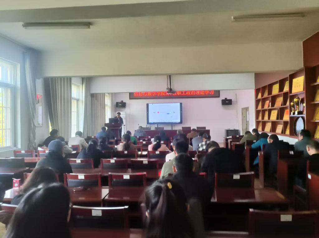 在8教406室开展3月份教职工政治理论学习,深入贯彻中央及上级党委决策部署,聚焦全面从严治党、教育改革发展和党风廉政建设等重点内容,为学院高质量发展筑牢思想根基。会议由院党委书记李喜成主持。