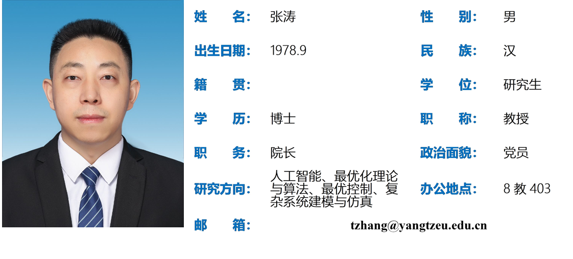张涛,男,1978年9月生,博士,教授,博士生导师,现任iqqtv 院长。2014年6月博士毕业于武汉大学系统工程专业。2017.9-2018.9,美国德州农工大学访问学者。湖北省系统工程学会常务理事,湖北省数学会理事。